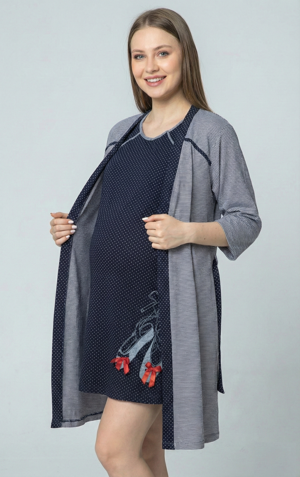 Design: Model modern in dungi subtiri (stil marinar), care completeaza perfect camasa de noapte.