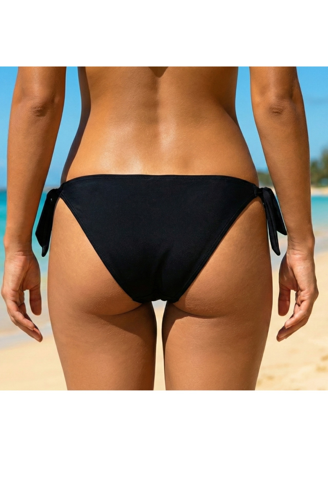 Completeaza-ti tinuta de plaja cu acest slip de baie negru, o piesa esentiala si versatila pentru sezonul estival. Modelul clasic tip bikini, cu snururi laterale, iti permite sa ajustezi marimea exact asa cum iti doresti pentru un confort maxim.